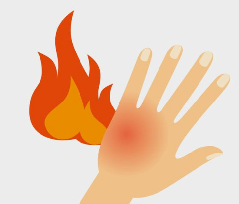 a) First-degree burn: This kind of burn only affects only the outer layer of skin and causes redness and swelling. It is considered a minor burn.